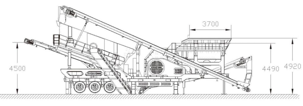 The whole machine of the mobile station is equipped with a feeder, hammer breaker, vibration screen and belt conveyor. It integrates crushing, screening, feeding and material conveying. It is highly integrated and is a small mobile production line.